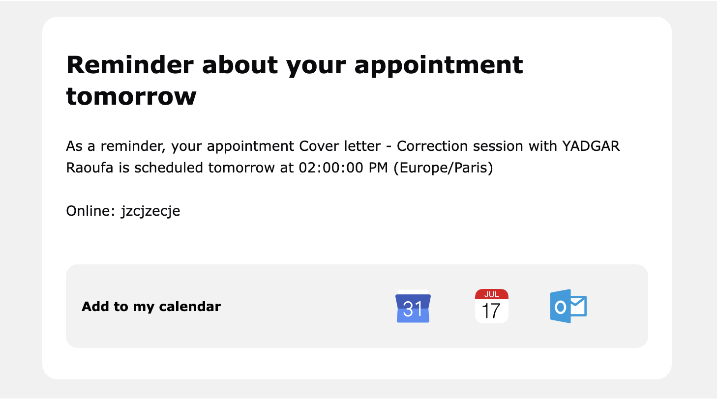 Nach dieser E-Mail erhält der Student 24 Stunden vor dem Termin eine Erinnerung: