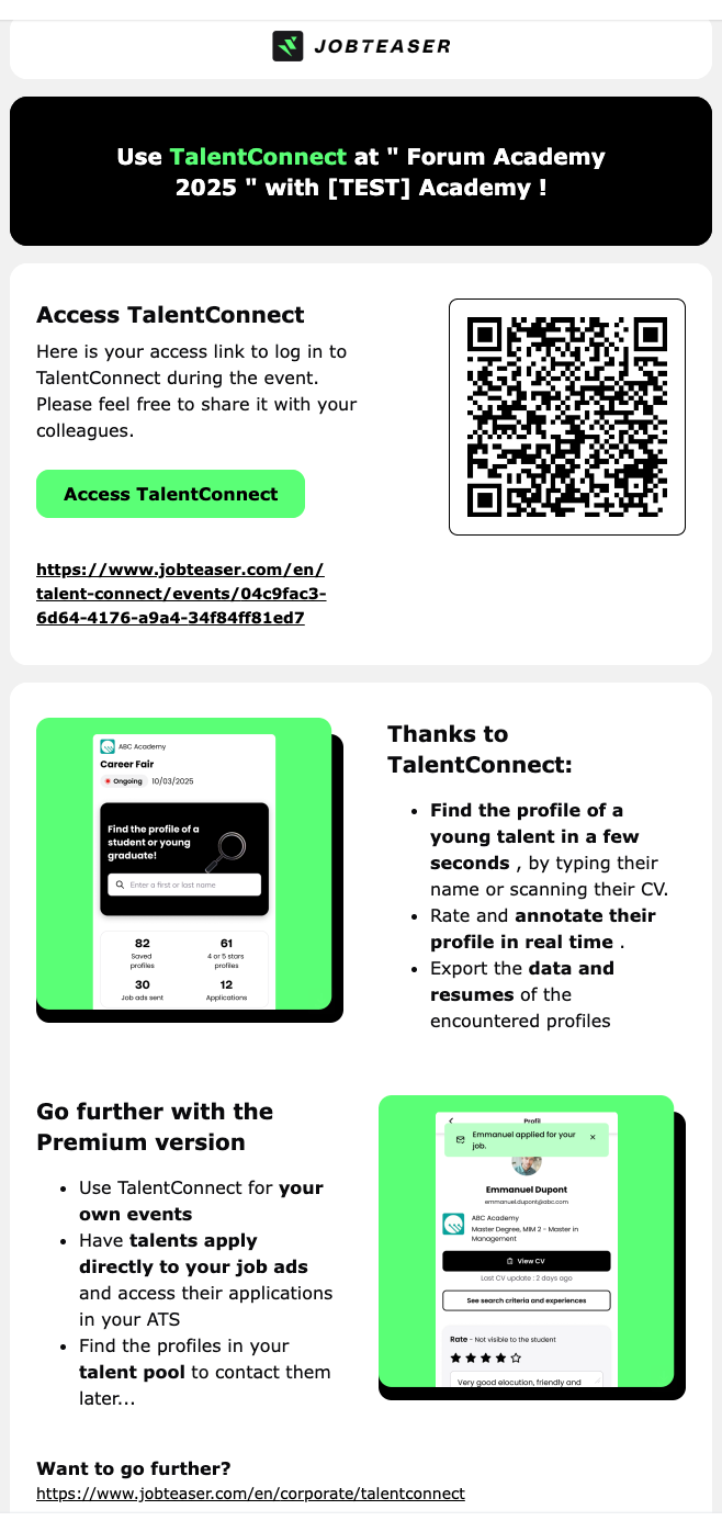 2. TalentConnect für die Veranstaltung aktivieren 🚀